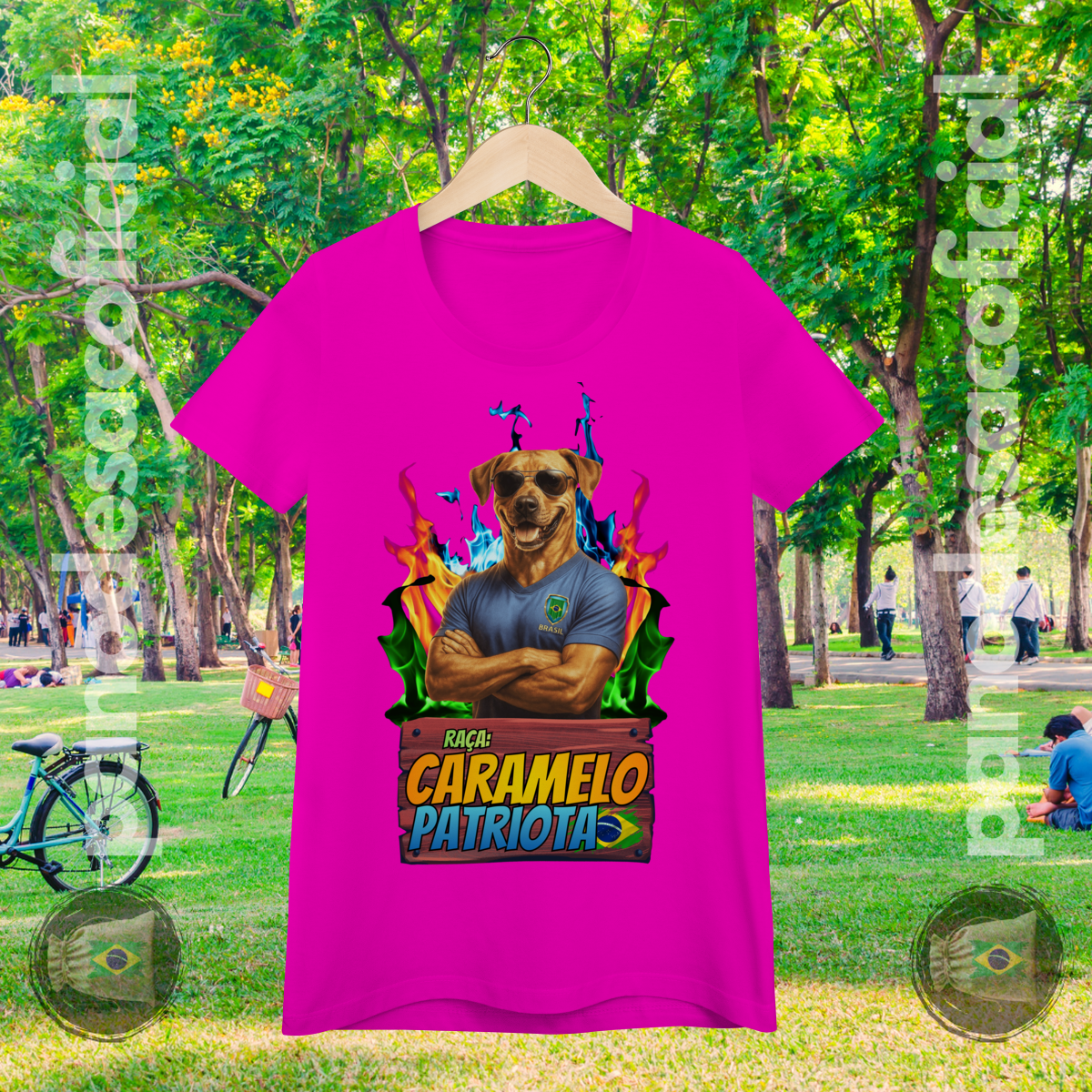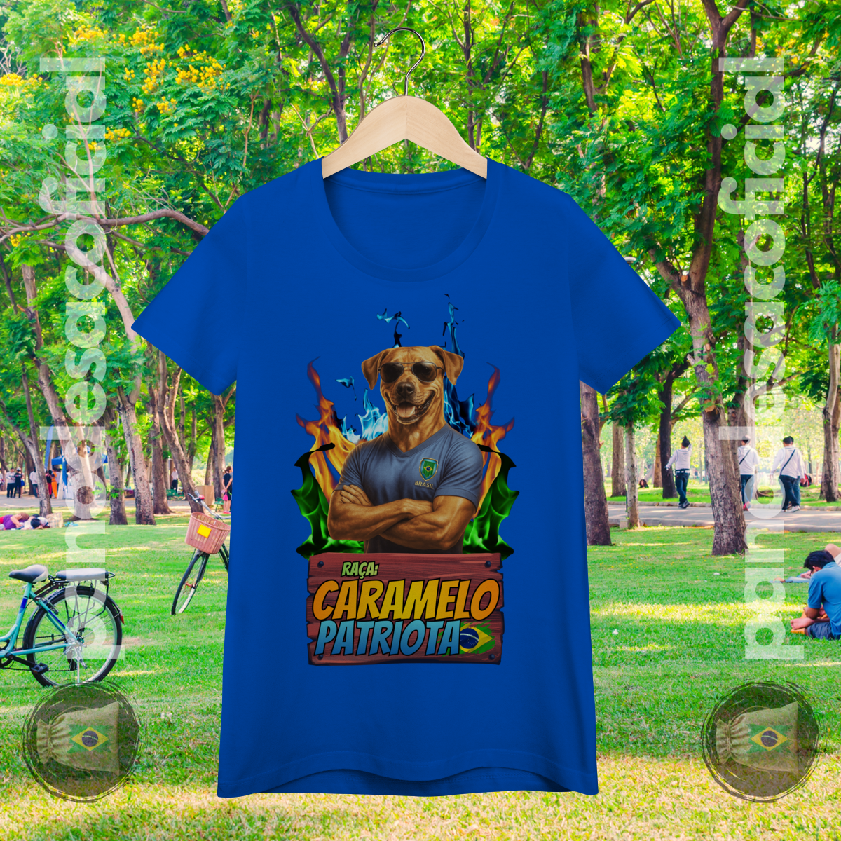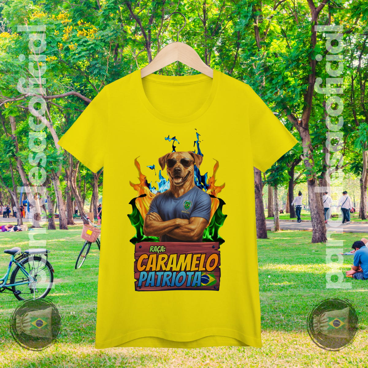 Chegou a hora de vestir o símbolo que melhor representa a alma e a garra do povo brasileiro. A camiseta "CARAMELO PATRIOTA" é um tributo ao nosso maior patrimônio canino: o cão Caramelo!