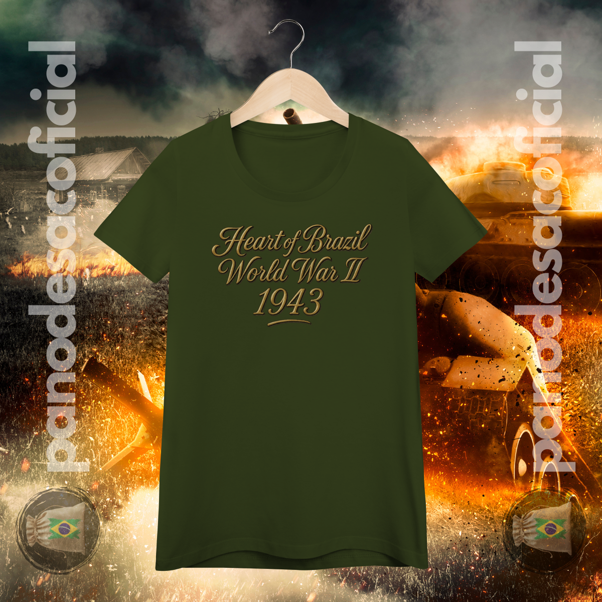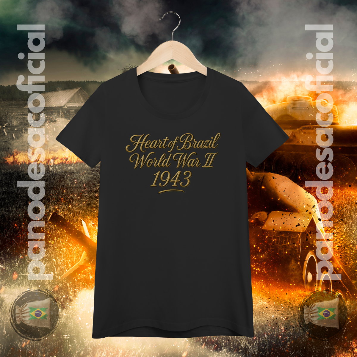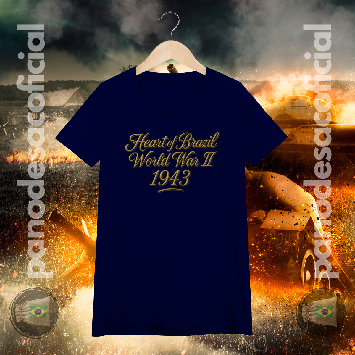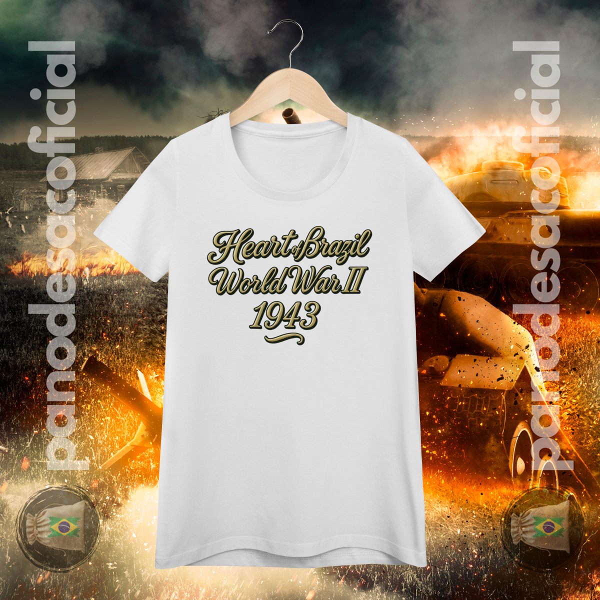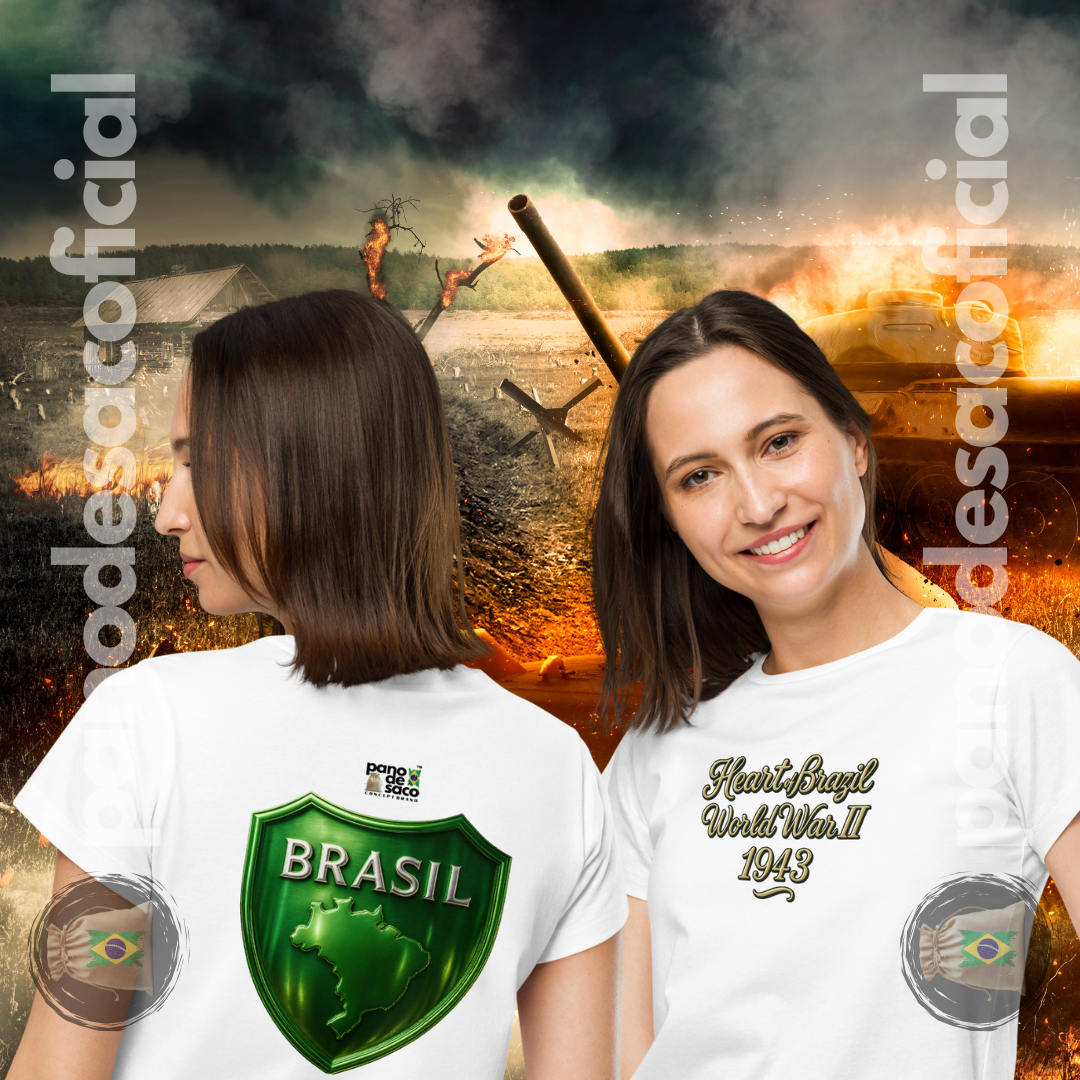 Esta camiseta apresenta o brasão "Coração do Brasil", um dos primeiros distintivos utilizados pelos nossos "pracinhas" (soldados da FEB) em 1943 e no início da campanha na Itália, por volta de 1944.