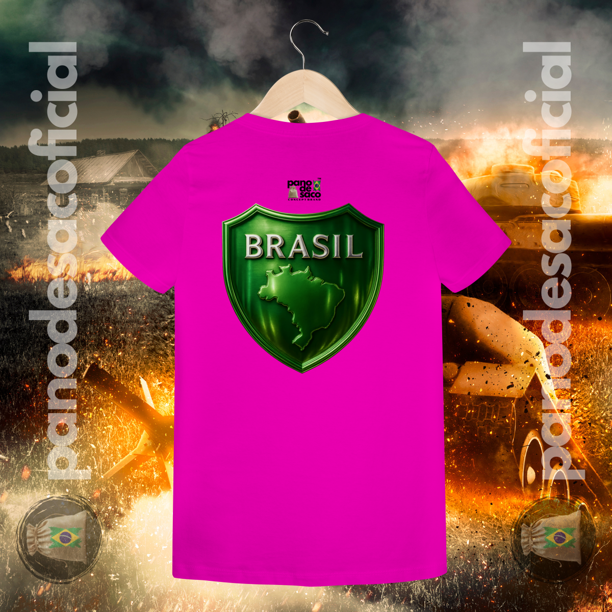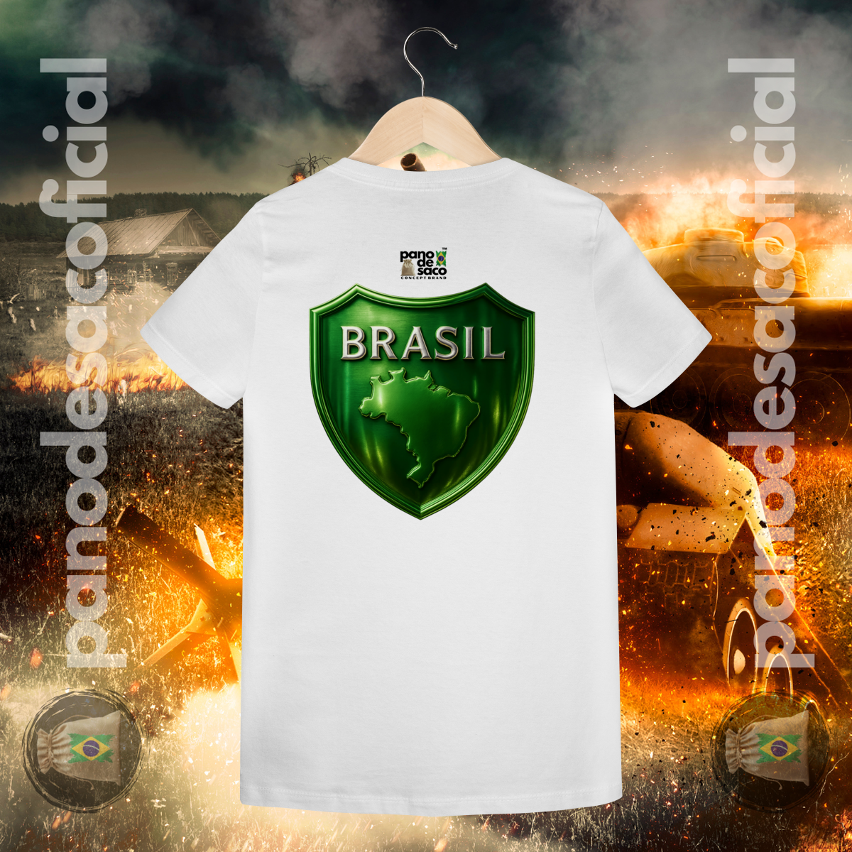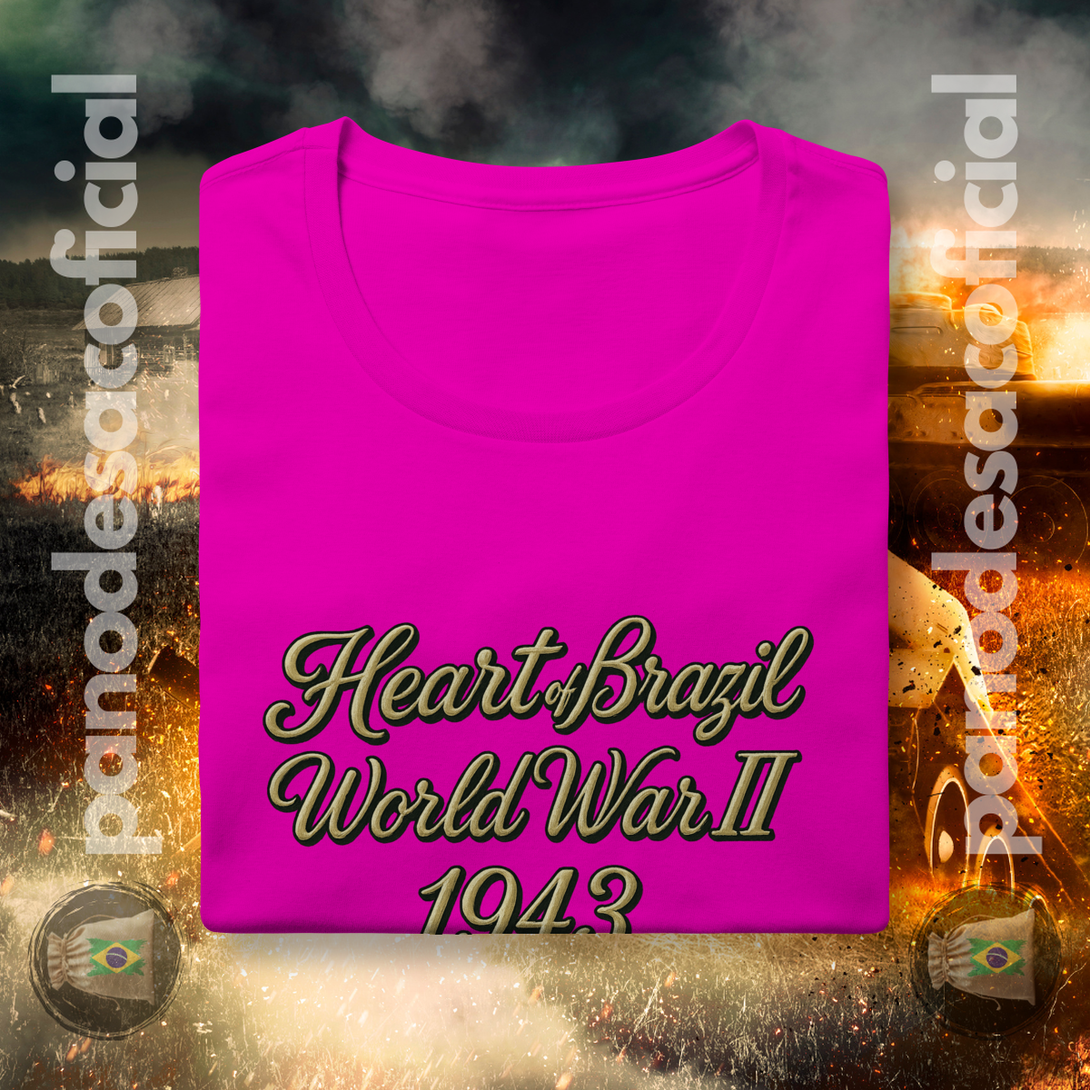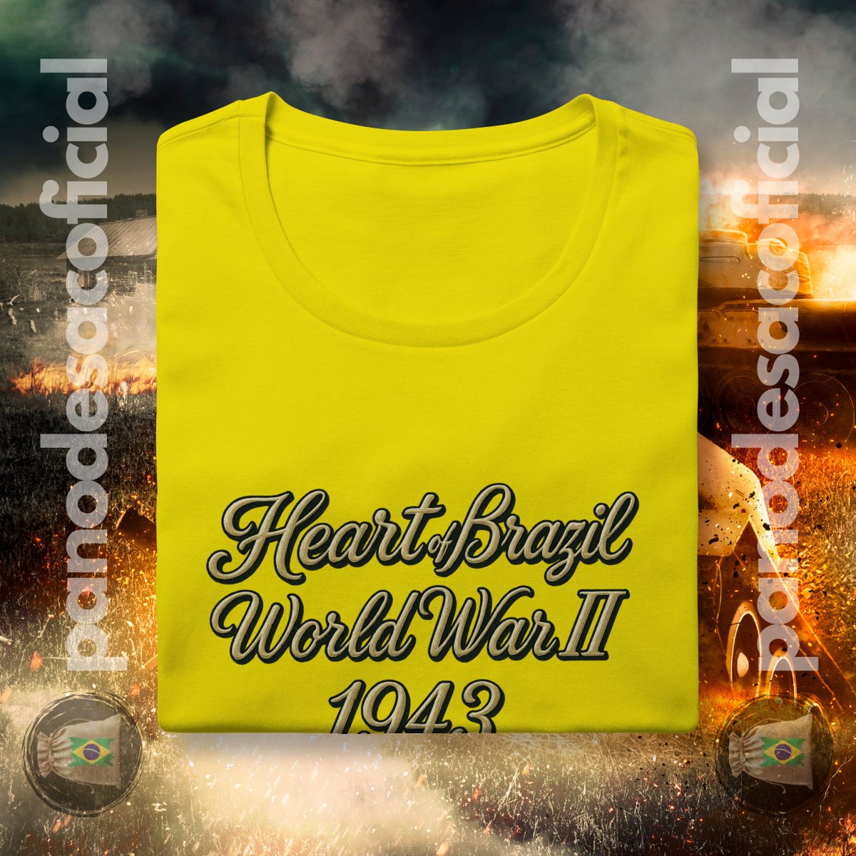 Esta camiseta apresenta o brasão "Coração do Brasil", um dos primeiros distintivos utilizados pelos nossos "pracinhas" (soldados da FEB) em 1943 e no início da campanha na Itália, por volta de 1944.