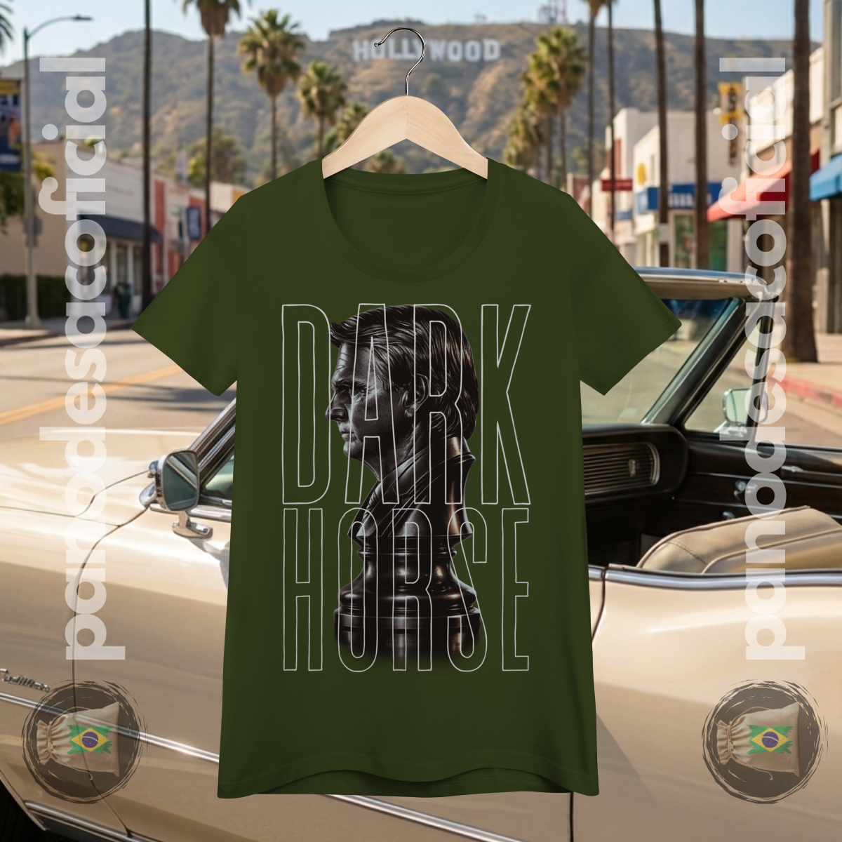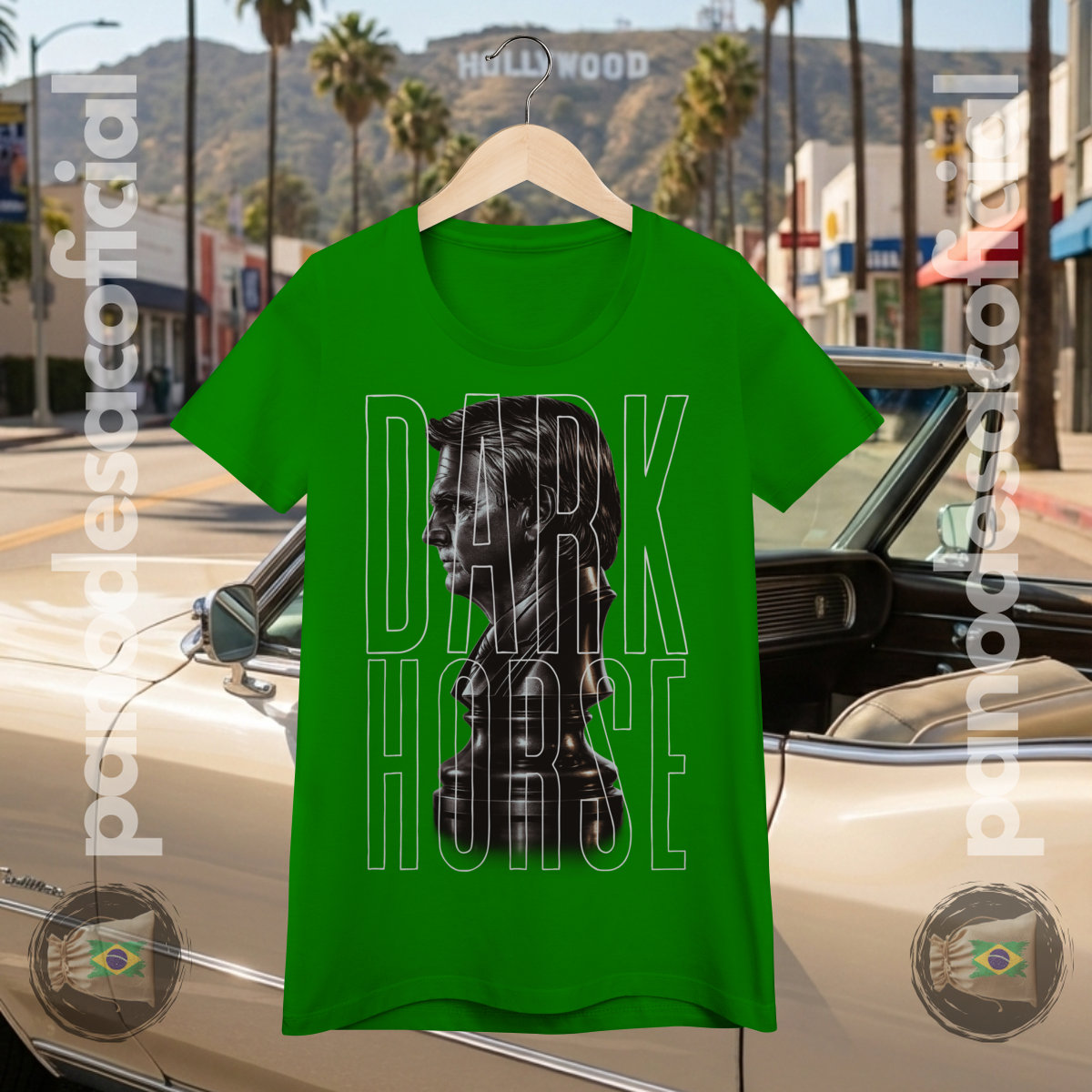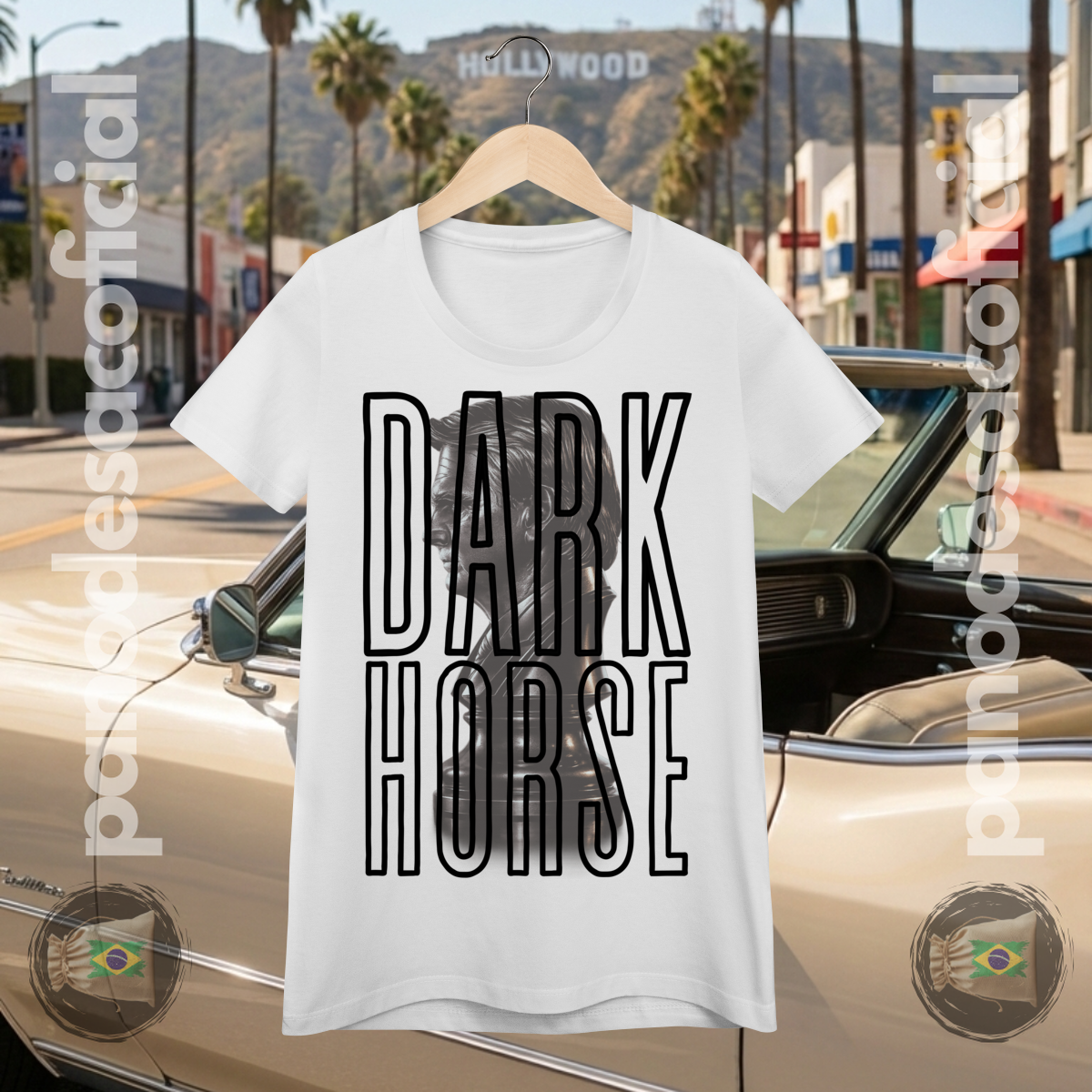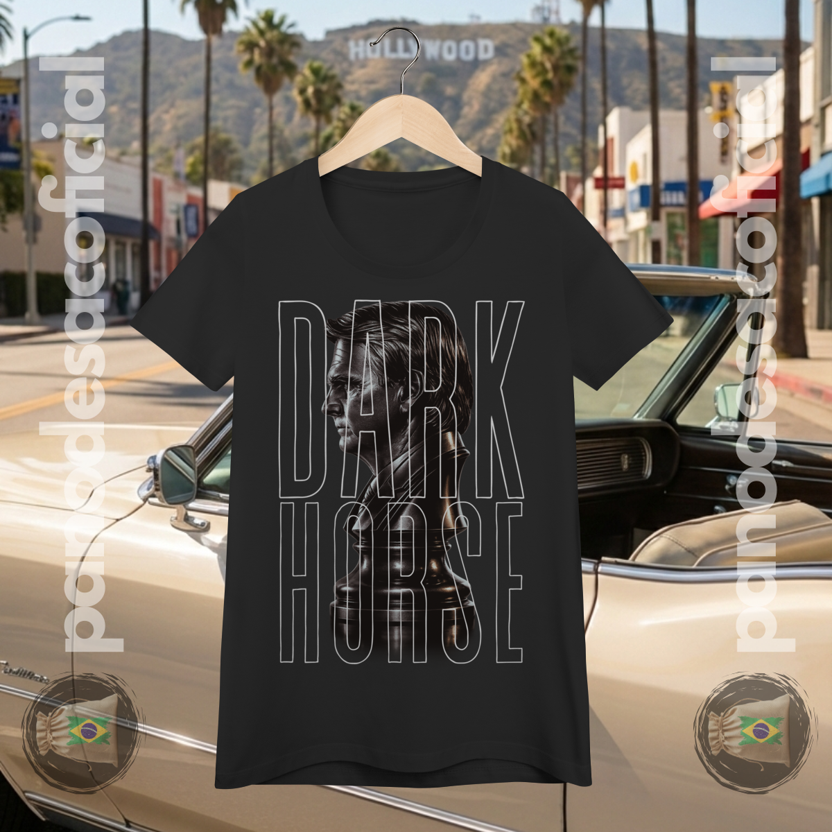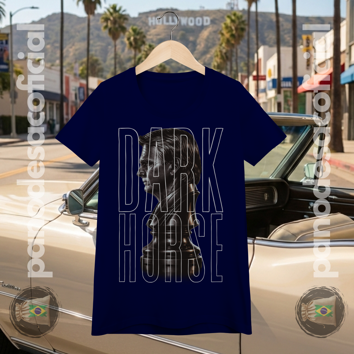 A estampa, em estilo busto escultural, captura a essência do termo norte-americano "Dark Horse": aquele candidato subestimado, o azarão que ninguém viu chegar, mas que surpreendeu de forma excepcional.