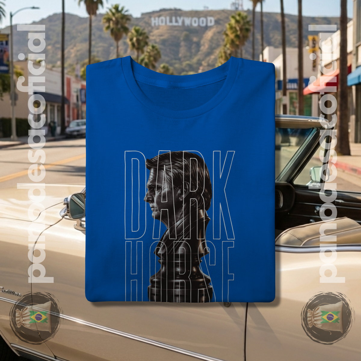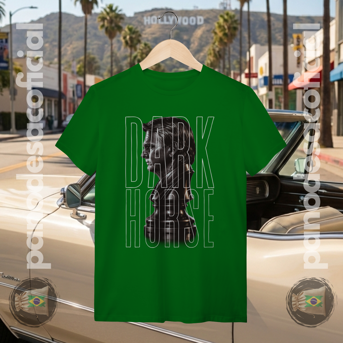 Vista a história de um dos capítulos mais cinematográficos da política brasileira. A camiseta "DARK HORSE" é um tributo à trajetória de Jair Messias Bolsonaro, o líder que desafiou todas as probabilidades e o sistema para despertar a esperança em milhões de corações patriotas.