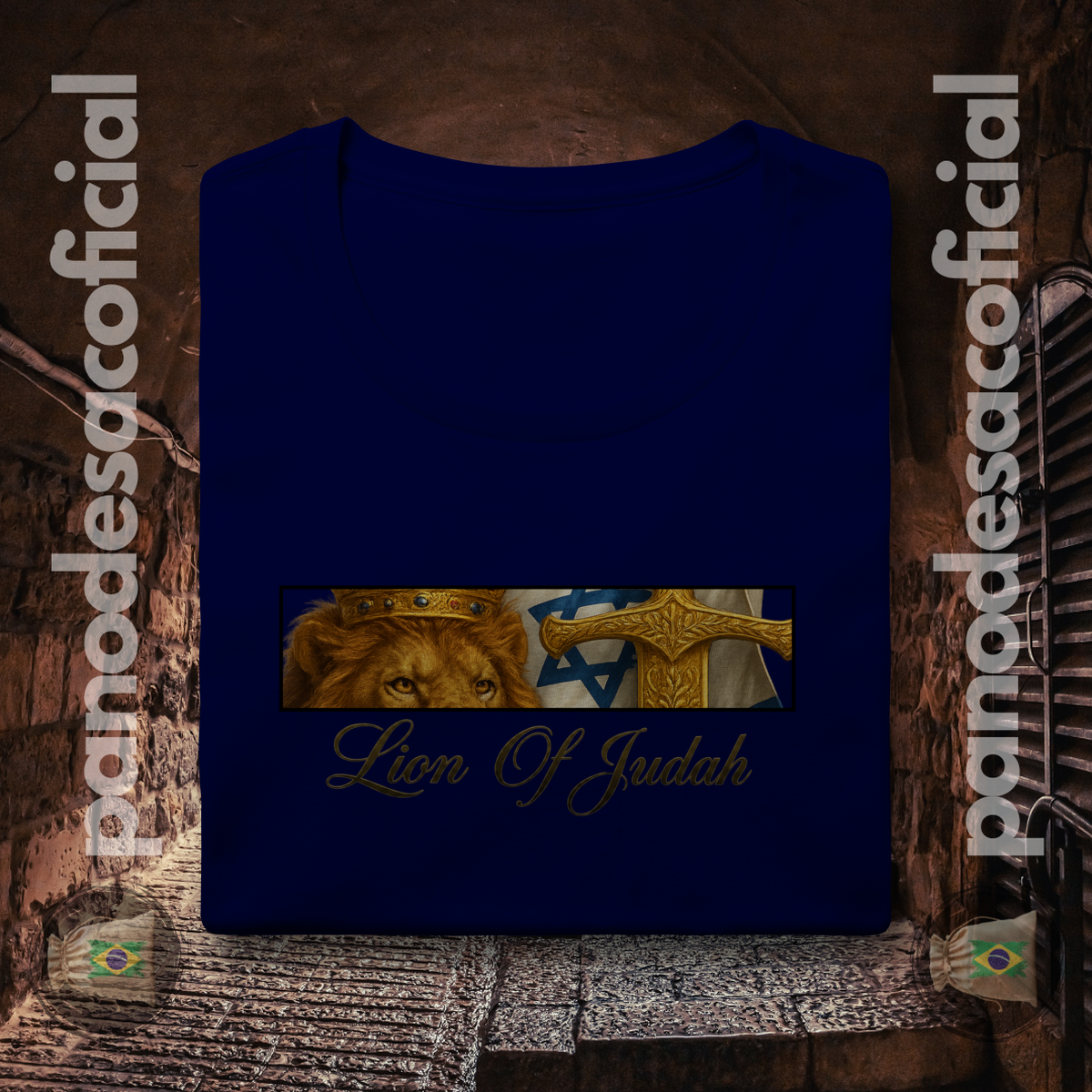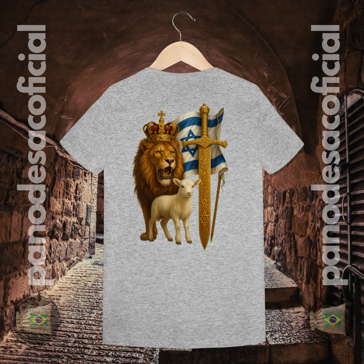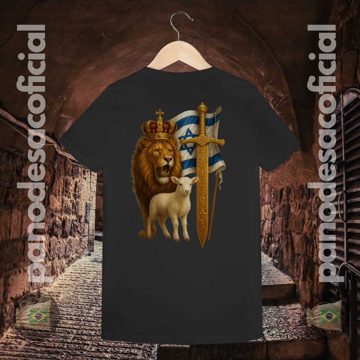 • Estampa Premium: A arte do Leão, do Cordeiro, da Espada Dourada e da Bandeira é aplicada com tecnologia premium, oferecendo detalhes realistas, cores ricas e altíssima durabilidade.