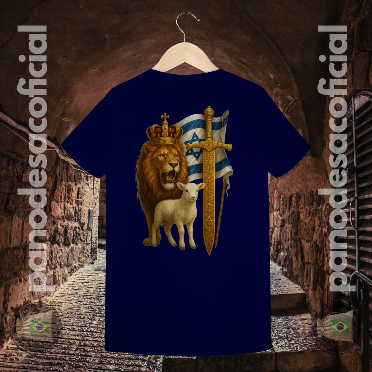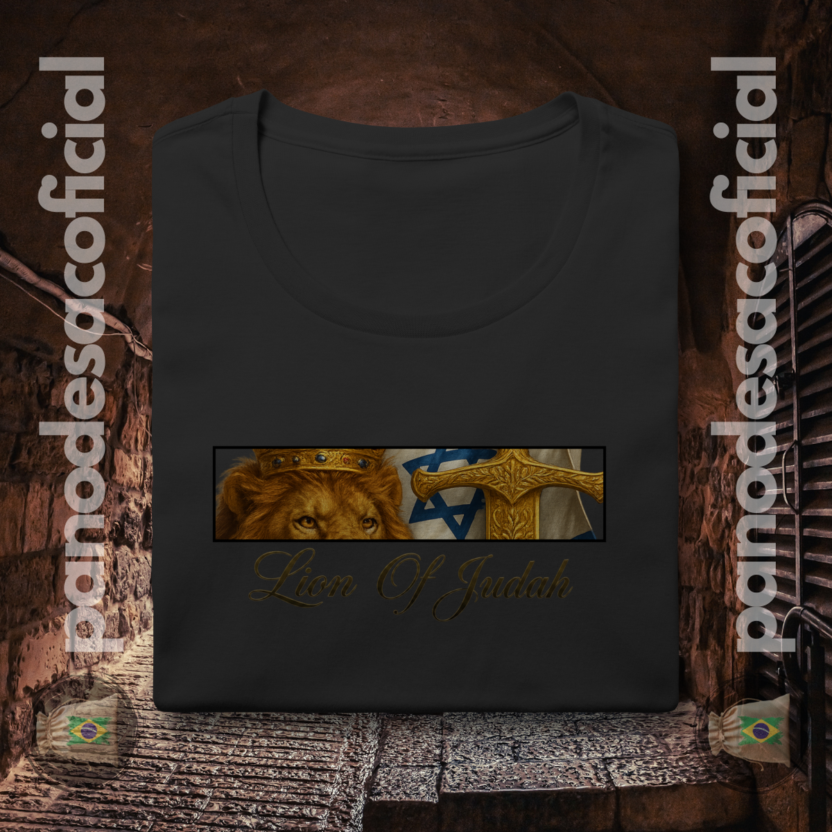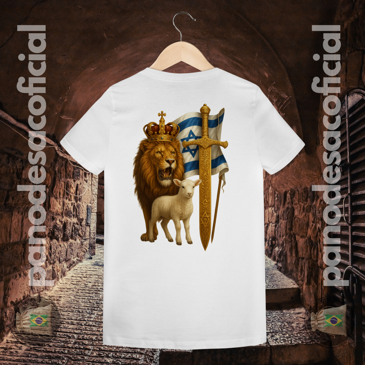 • Estampa Premium: A arte do Leão, do Cordeiro, da Espada Dourada e da Bandeira é aplicada com tecnologia premium, oferecendo detalhes realistas, cores ricas e altíssima durabilidade.