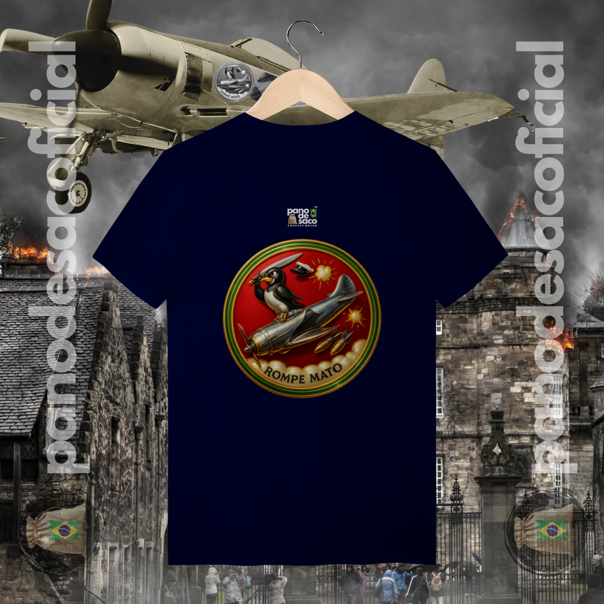 Esta camiseta traz o emblema criativo e único do esquadrão, conhecido como "Rompe Mato".