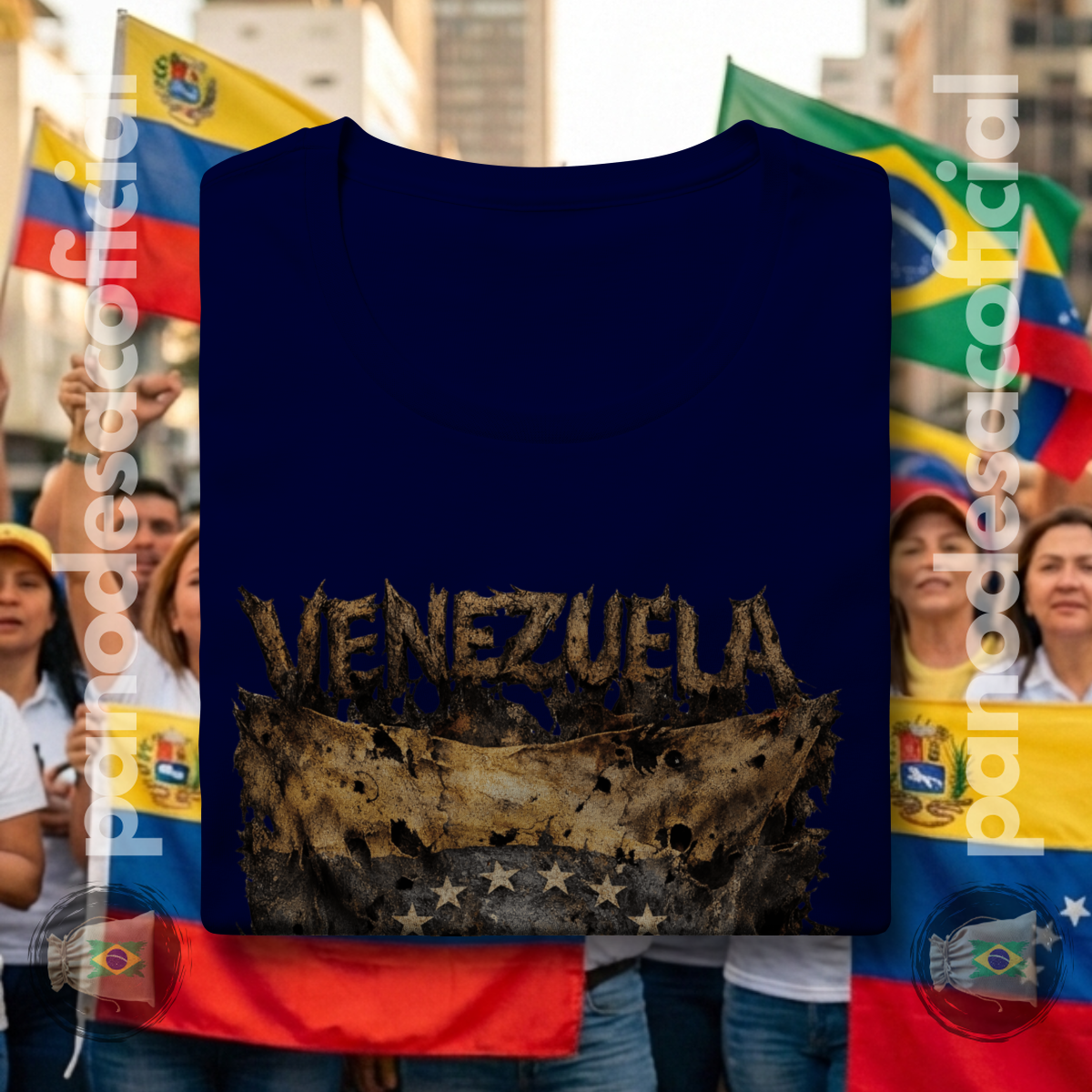 • Design de Resiliência: A bandeira venezuelana em estilo distressed (desgastada) representa a luta, a garra e a honra de quem não se curva diante da tirania.