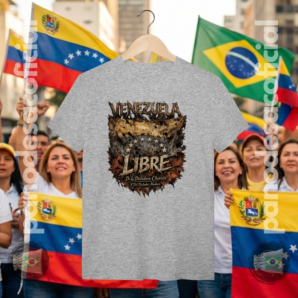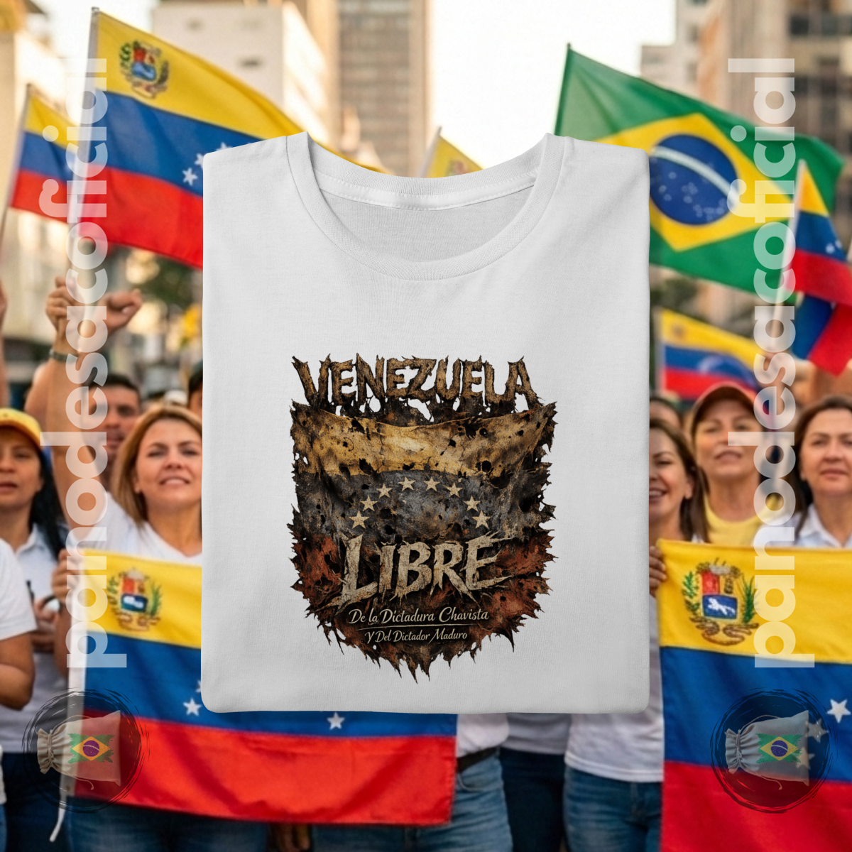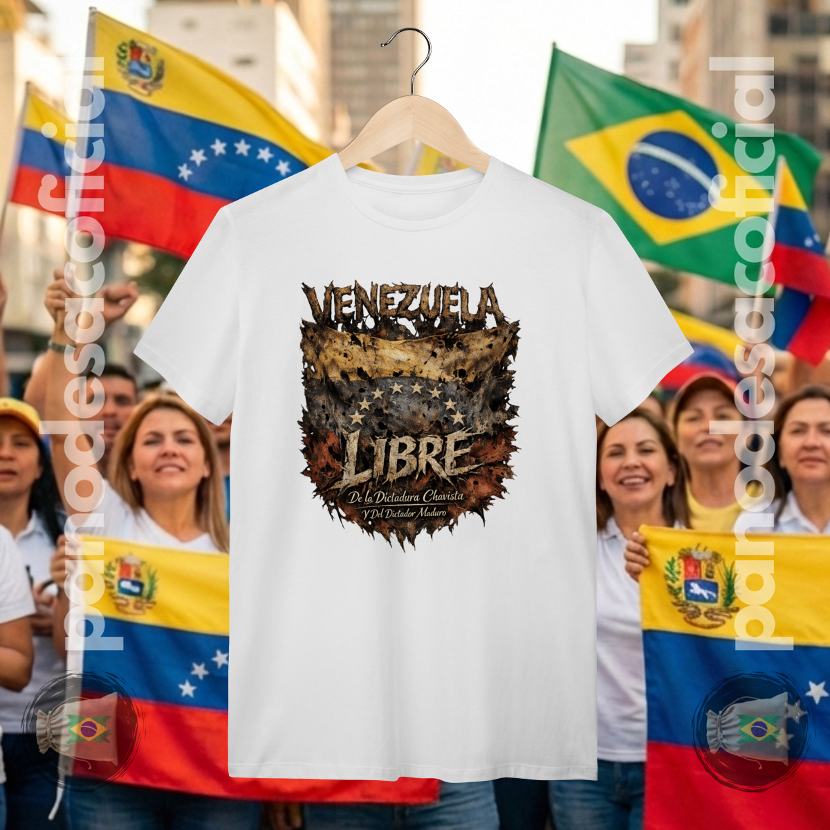 • União e Vigilância: Ao vestir esta camiseta, os brasileiros expressam solidariedade à Venezuela e reafirmam o compromisso com a liberdade no Brasil, posicionando-se contra qualquer forma de perseguição ideológica ou censura à direita conservadora.