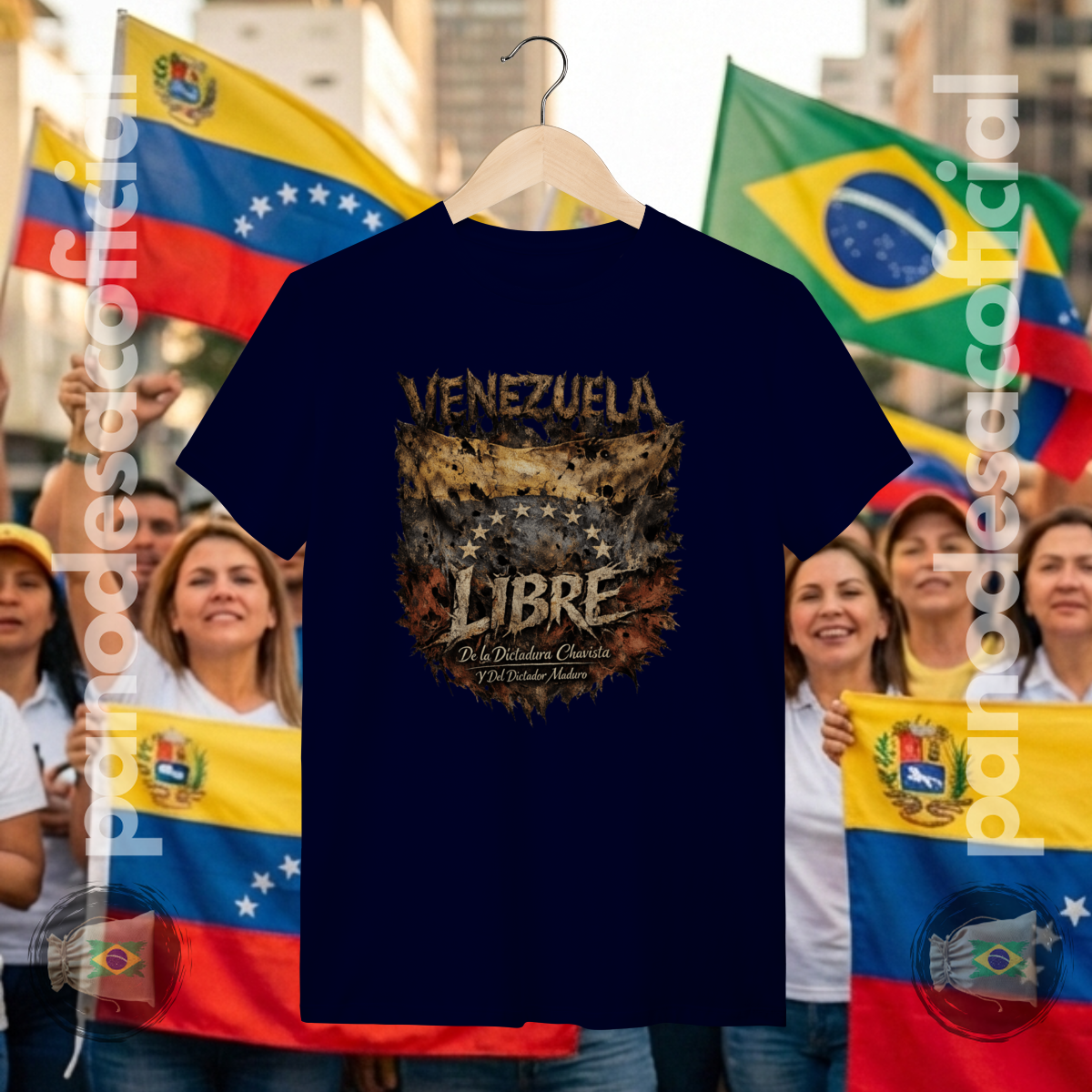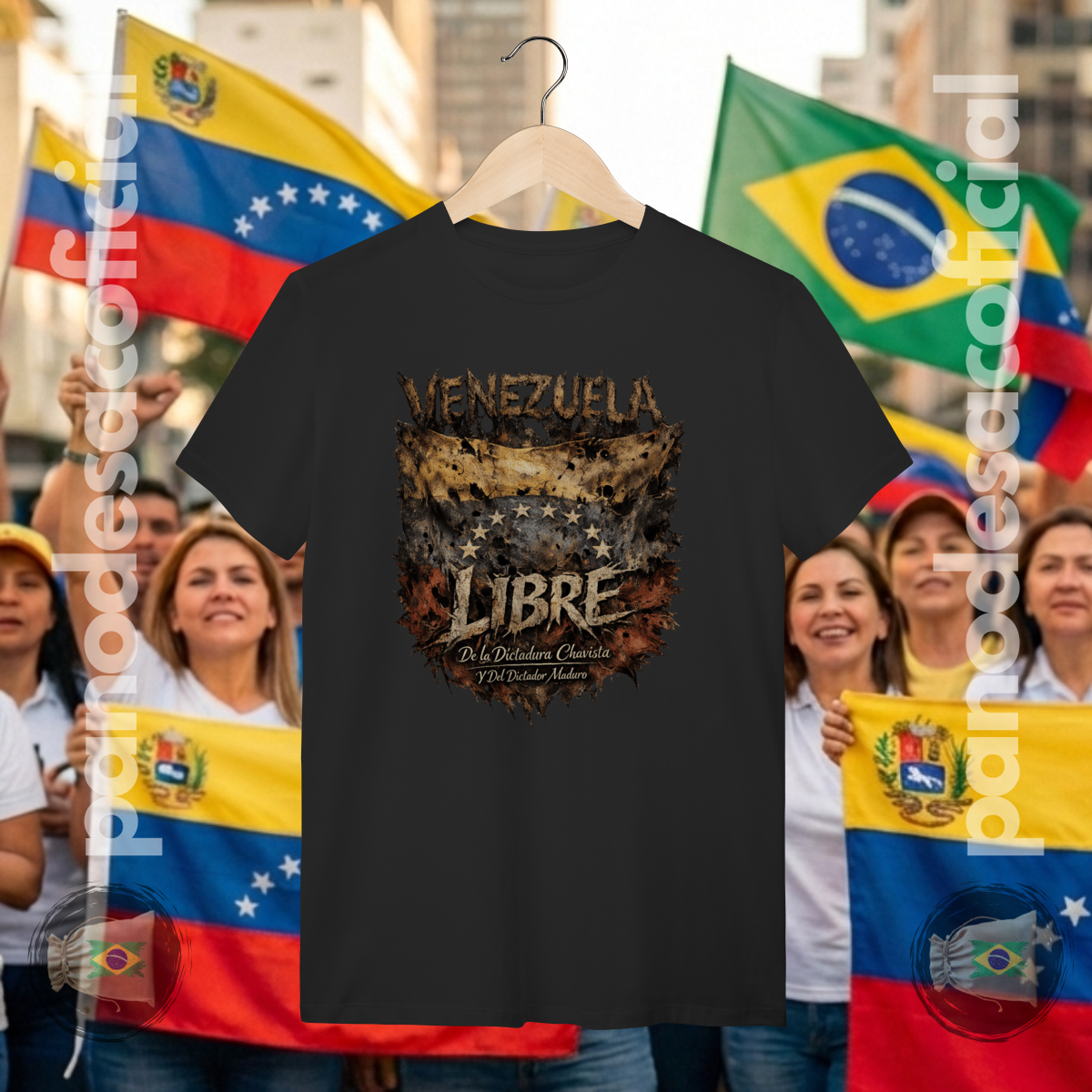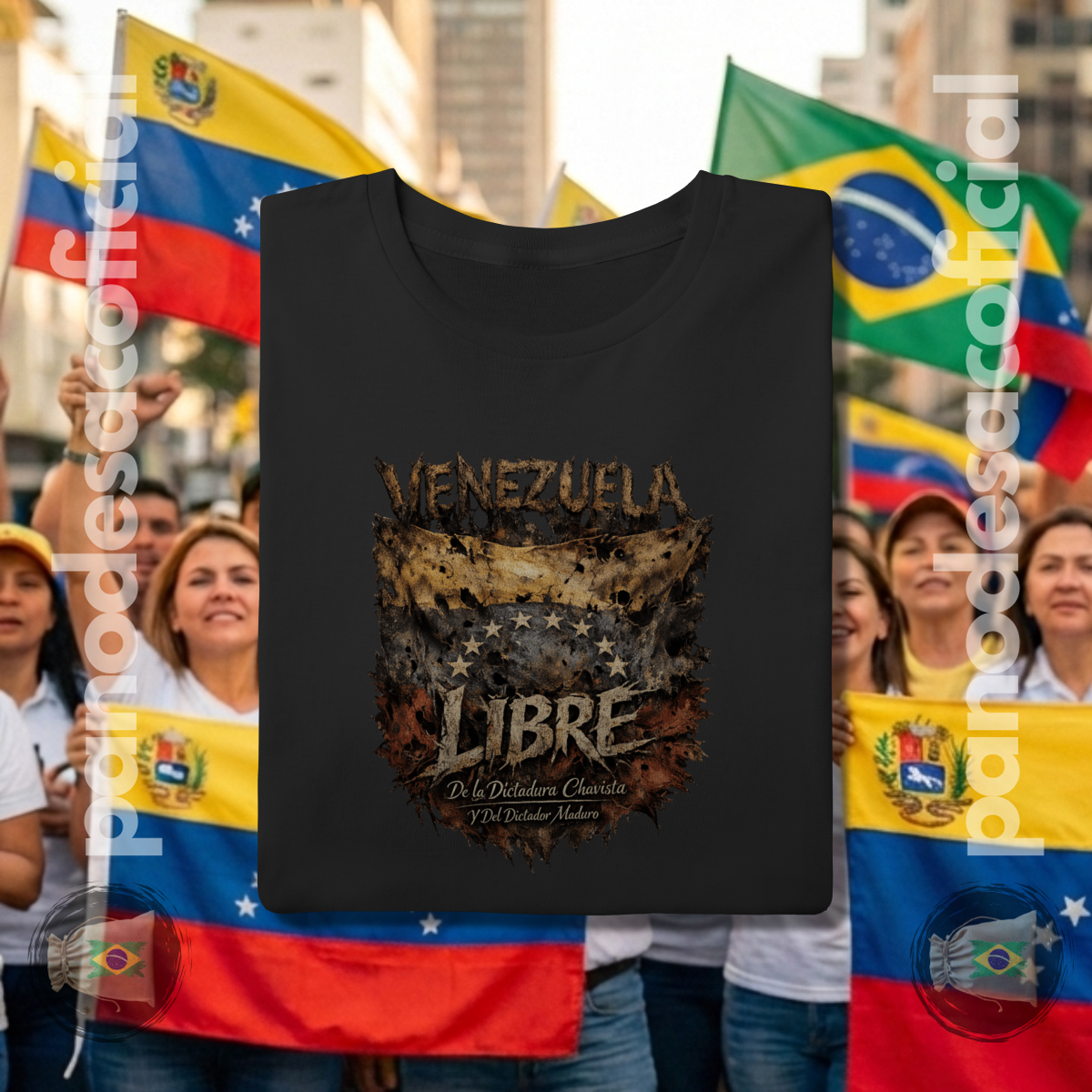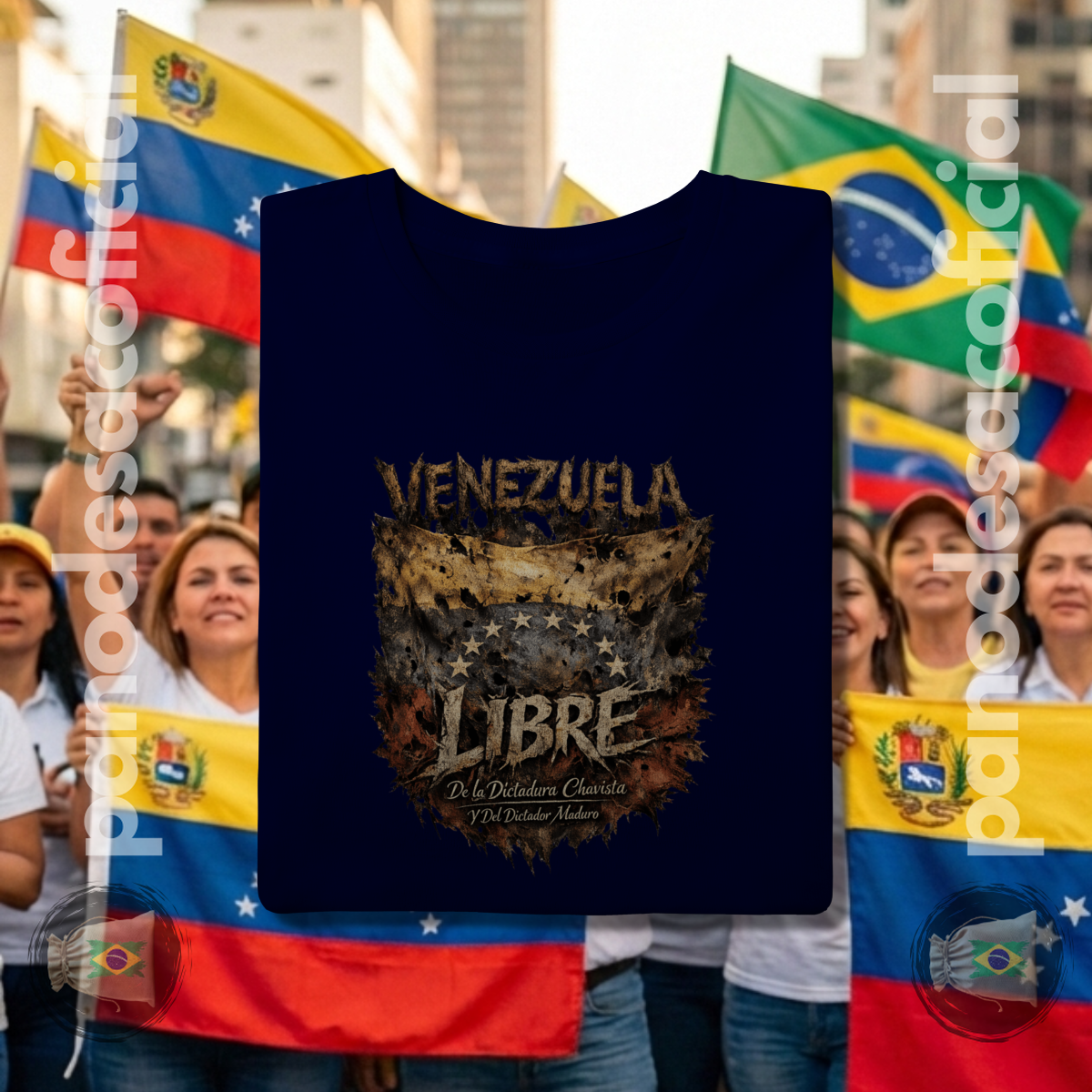 • União e Vigilância: Ao vestir esta camiseta, os brasileiros expressam solidariedade à Venezuela e reafirmam o compromisso com a liberdade no Brasil, posicionando-se contra qualquer forma de perseguição ideológica ou censura à direita conservadora.